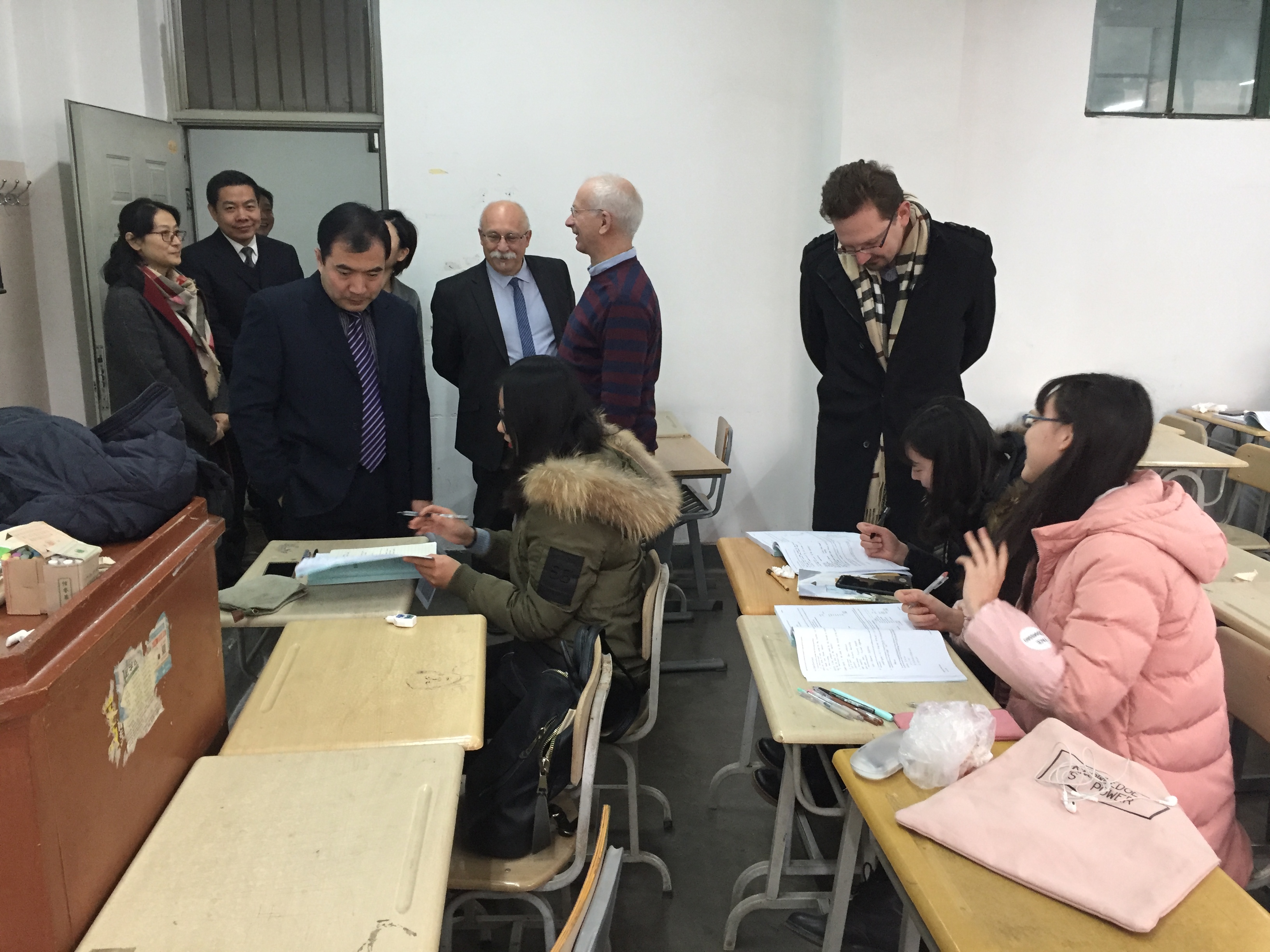 随后,蒂诺·本迪奥一行参观了pa电子的机房、语音室、录播教室等基础教学环境,对pa电子的教学设施加以肯定。他还参观了外教课程,气氛十分活跃,课堂教学效果很好。他强调今年与pa电子共同申报本科层面的中外合作办学项目是两校深化合作的开端,对pa电子给予的支持和帮助表示感谢并期待两校在未来开展更多形式、更深层次的合作。