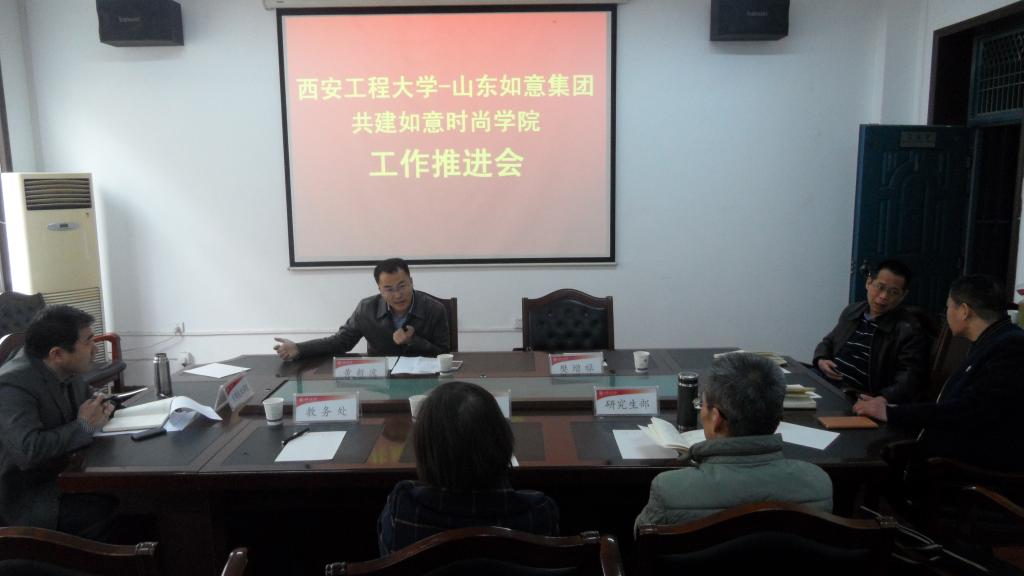 2017年3月29日,pa电子官方网站与山东如意集团共建如意时尚学院推进会在pa电子官方网站会议室召开。参加此次会议的有副校长黄新波、人事处、研究生部和pa电子官方网站相关负责人。会议由黄新波主持。