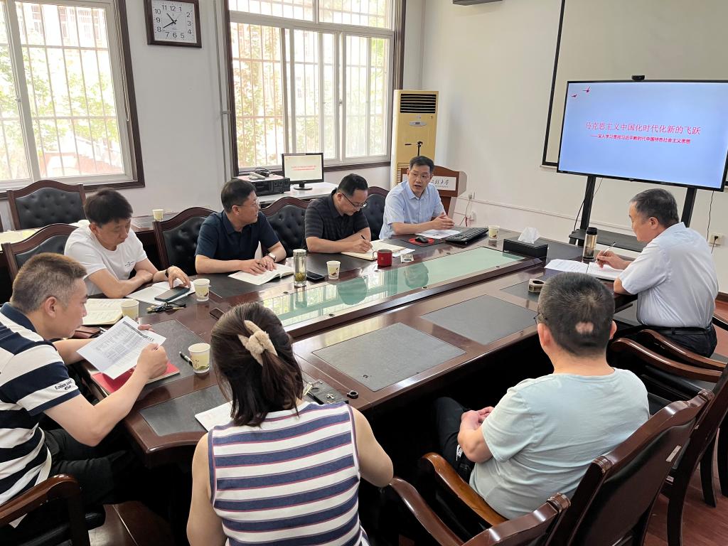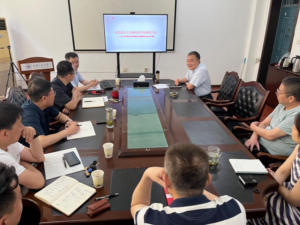 为深入学习贯彻习近平新时代中国特色社会主义思想,进一步开展好主题教育活动,提高党员教职工的政治理论素养, 7月5日上午pa电子官方网站直属支部邀请马克思主义学院屈旻老师以《马克思主义中国化时代化的新飞跃》为题讲授党课,学院全体党员教职工参加。